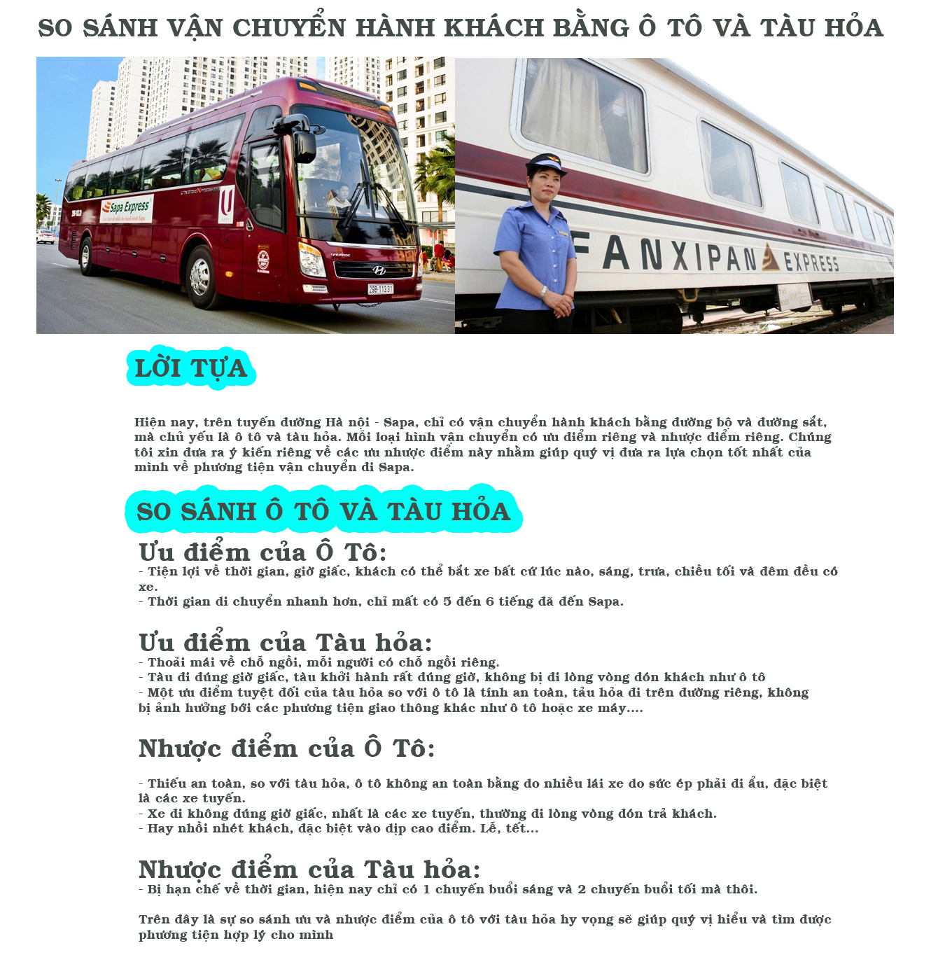 Khuyến mại mua vé xe đi Sapa So sánh các phương tiện đi Sapa